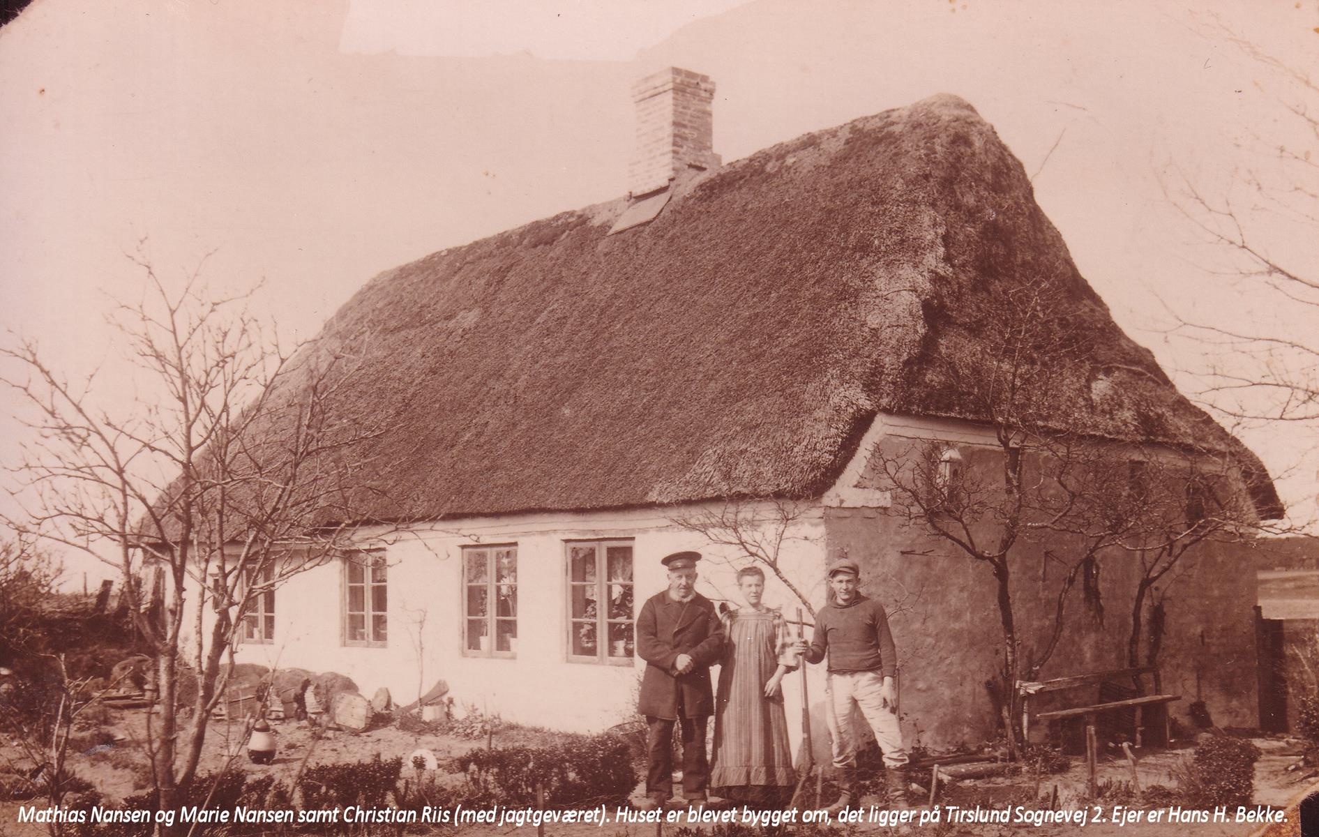 Billede 10 Tirslund Sognevej 2. Mathias og Marie Nansen samt Christian Riis (med jagtgeværet)